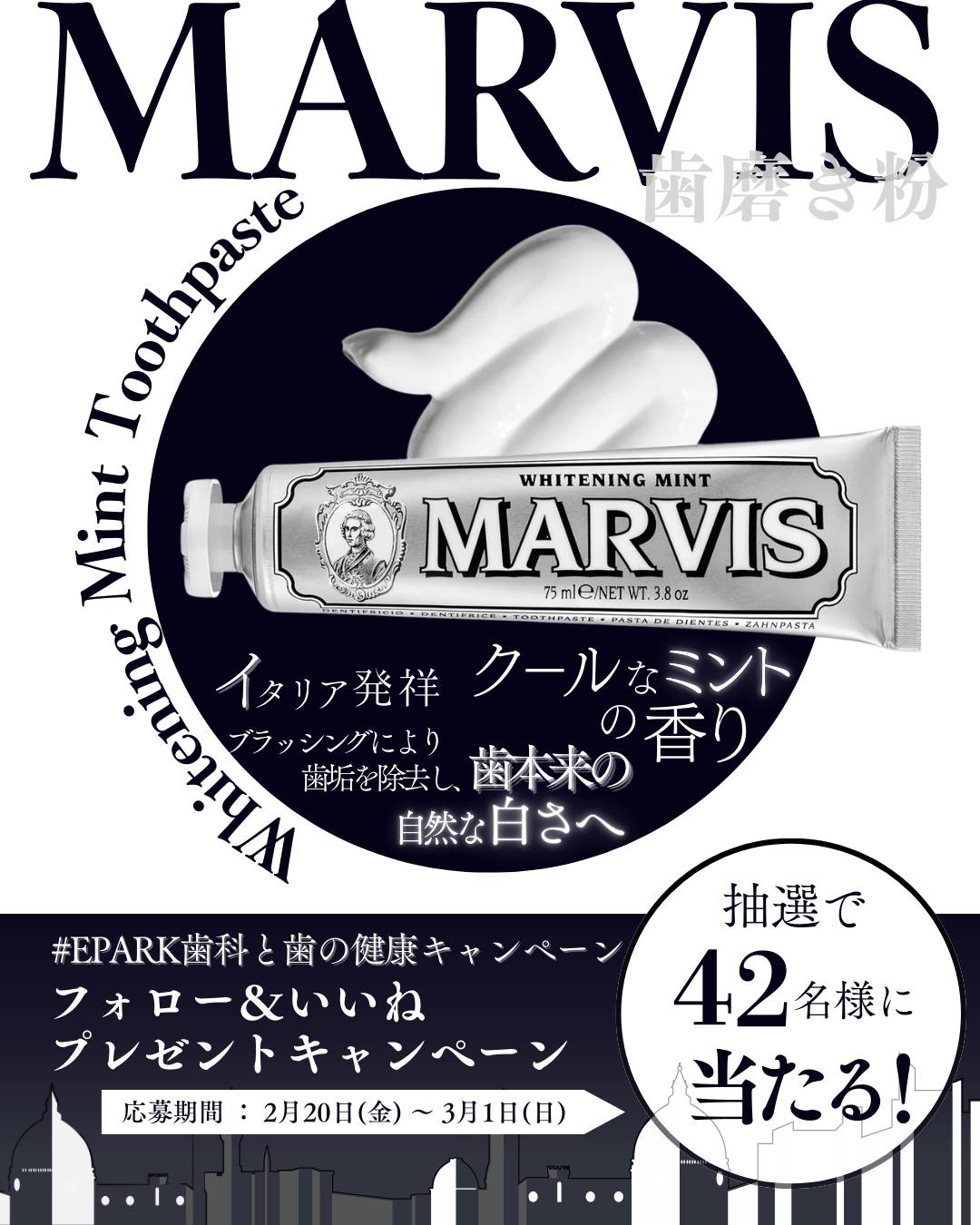 【Instagram懸賞】プレミアム歯磨き粉 MARVIS ホワイト・ミントを42名様にプレゼント