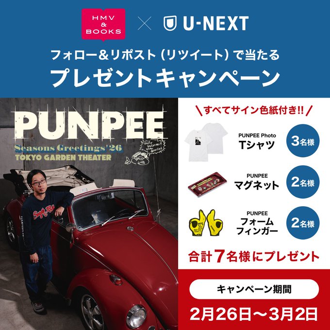 HMV&BOOKS(HMV)‐『PUNPEE』U-NEXT独占ライブ配信記念リポストキャンペーン