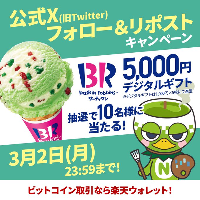 賞品:サーティワン アイスクリーム デジタルギフト5,000円分(10名様)