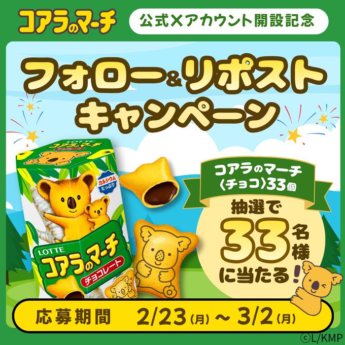 賞品:コアラのマーチ<チョコ>33こ(33名様)