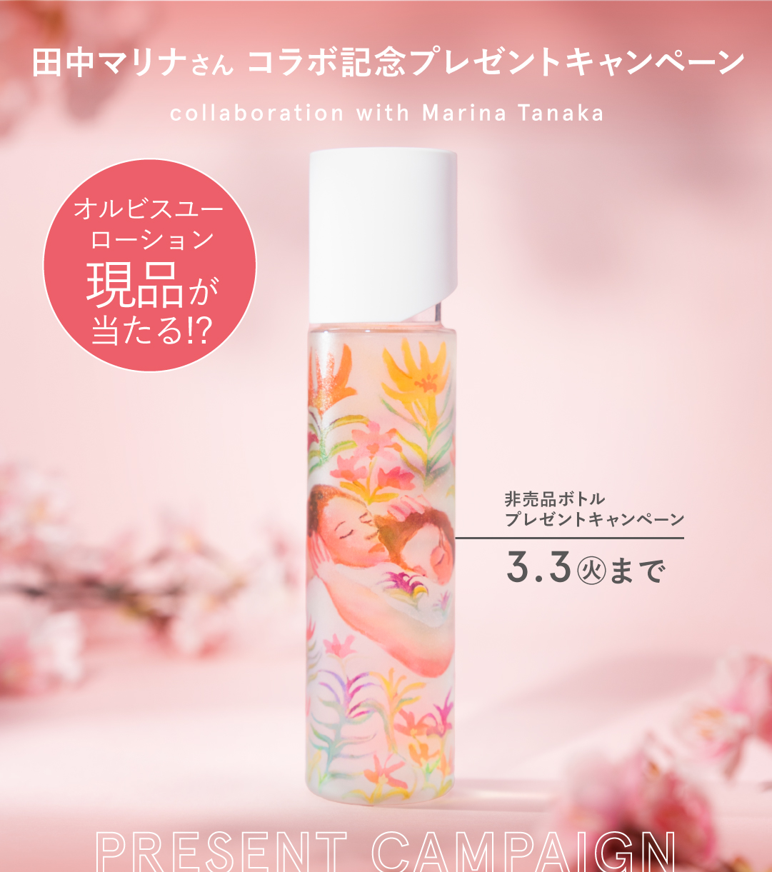 賞品:『オルビスユー エッセンスローション』非売品 田中マリナさん コラボ オリジナルつめかえ用ボトル&『オルビスユー エッセンスローション』[医薬部外品]つめかえ180mL(20名様)