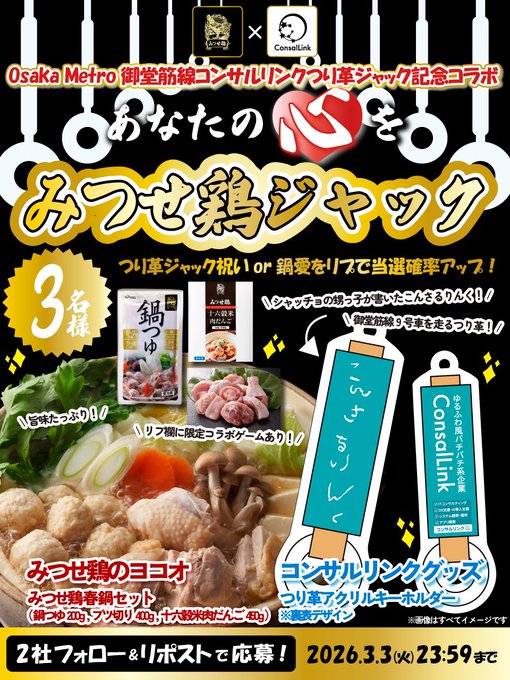 賞品:みつせ鶏春鍋セット&つり革アクキー(3名様)