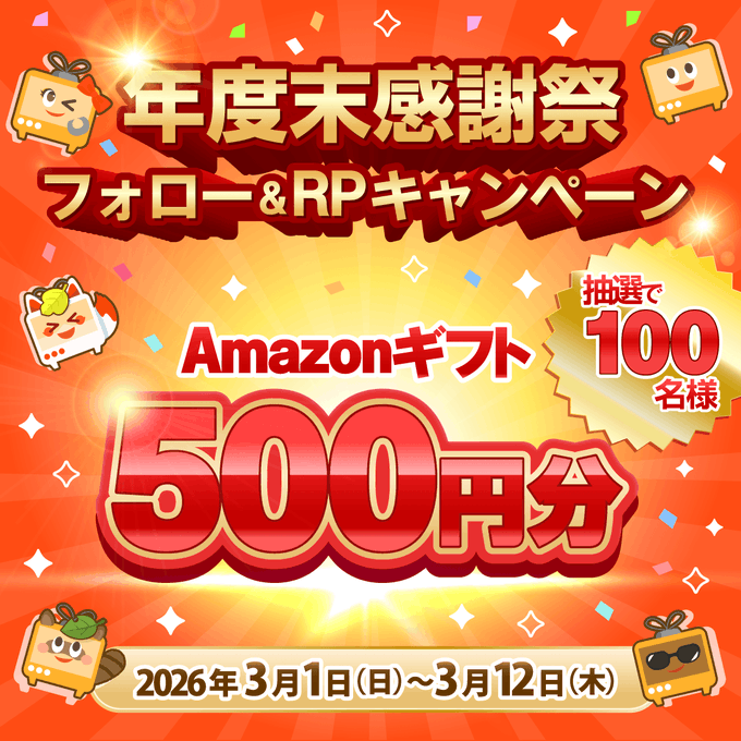 賞品:Amazonギフト500円分(100名様)