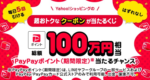 くじを引くとPayPayポイント(期間限定)やYahoo!ショッピングでご利用いただけるクーポンが当たります。