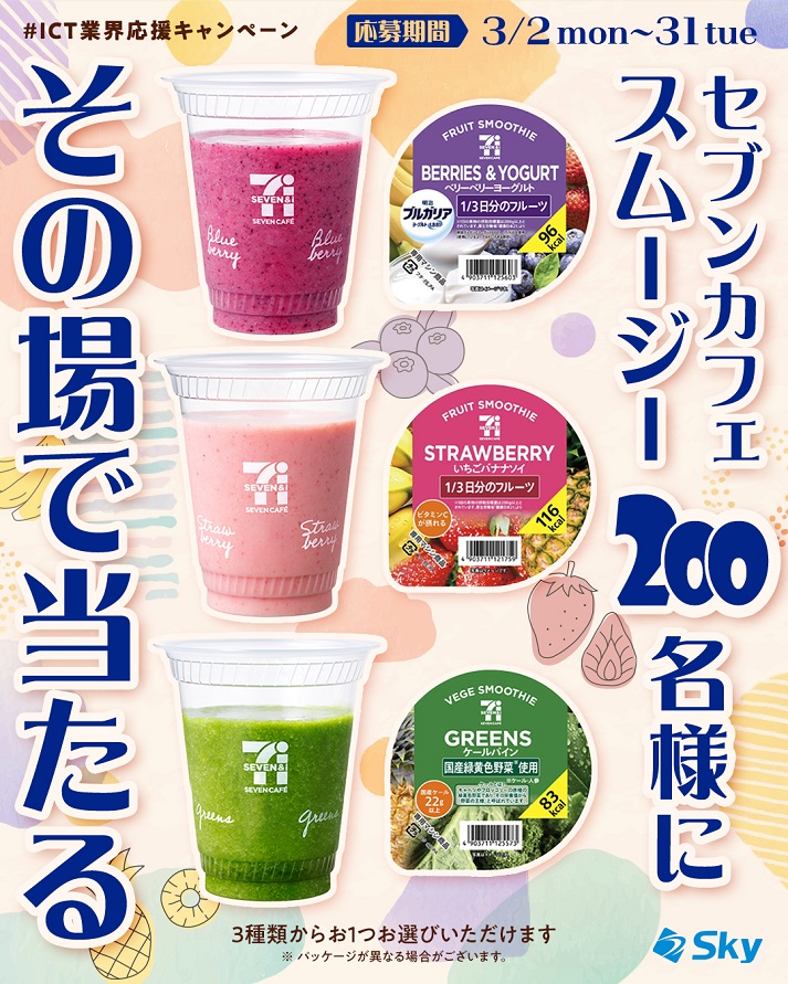 賞品:セブンカフェ スムージー 3種類から1つ 無料クーポン(200名様)