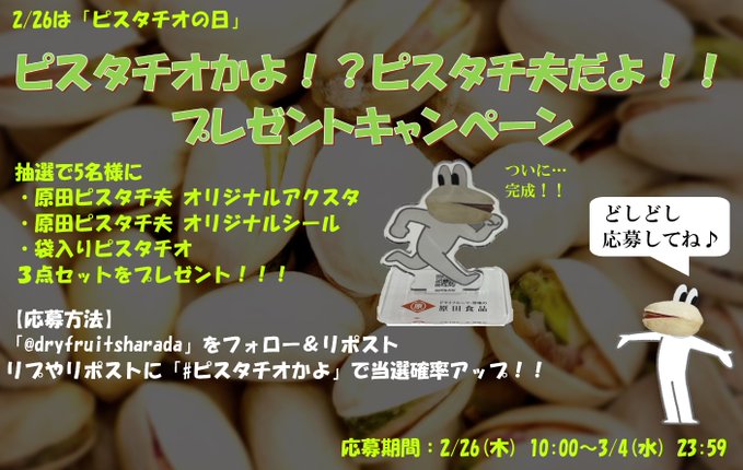 原田食品株式会社‐ピスタチオかよ!?ピスタチ夫だよ!!キャンペーン