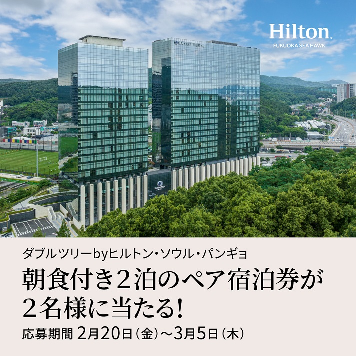 賞品:ダブルツリーbyヒルトン・ソウル・パンギョ デラックスルーム(ツインベッド)2泊3日朝食付きペア宿泊券(2名様)