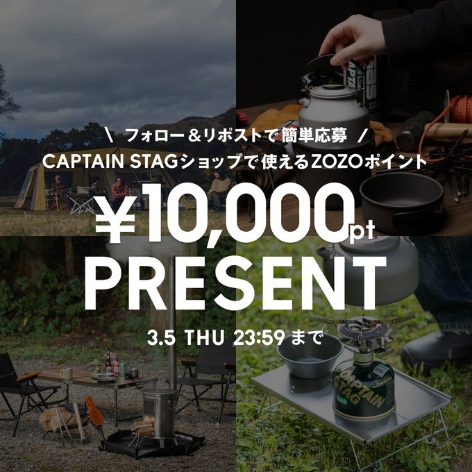 賞品:CAPTAIN STAGで使える1万分のZOZOポイント(10名様)