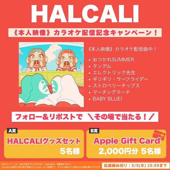 【X懸賞】HALCALIグッズセット、Apple Gift Card 2,000円分が10名様にその場で当たる!