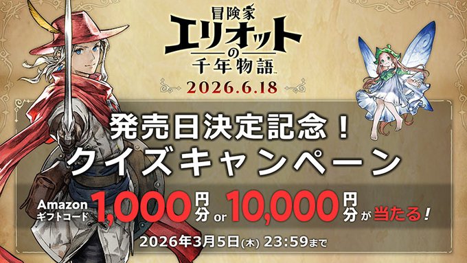 『冒険家エリオットの千年物語』発売日決定記念!クイズキャンペーン