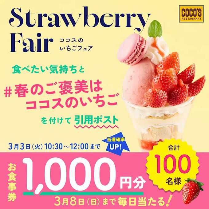 ココス『いちごフェア』開催記念