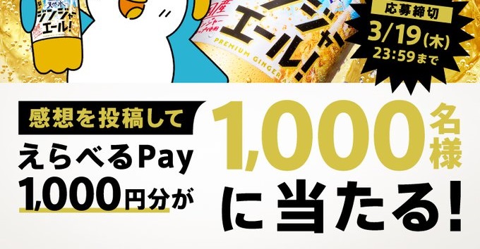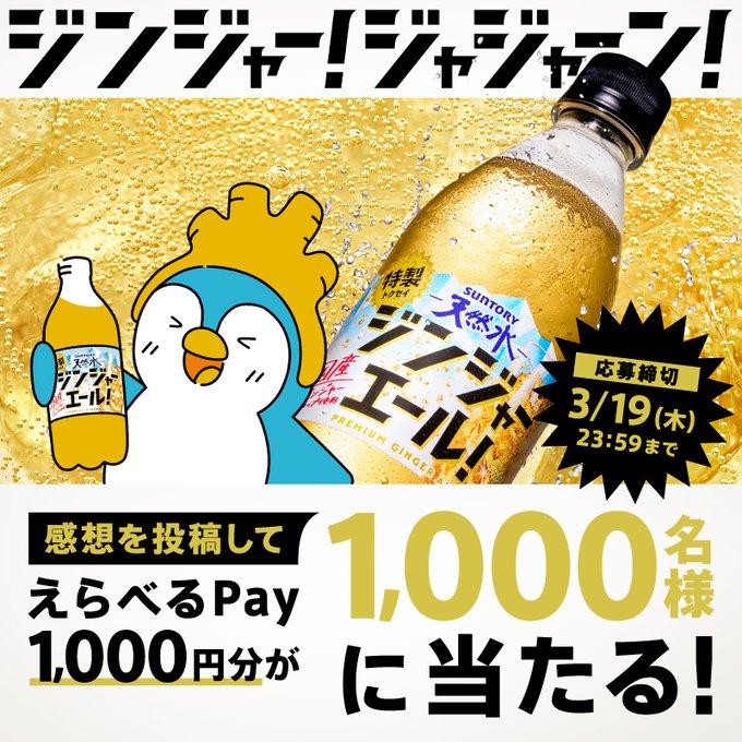 サントリー天然水‐天然水特製ジンジャーエール 感想投稿キャンペーン