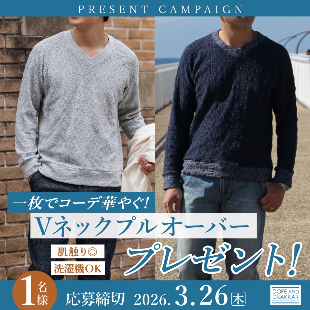 DOPE&DRAKKAR ジャガードVネックプルオーバーを1名様にプレゼント 2026.03.03藤巻百貨店‐プレゼントキャンペーン 賞品:DOPE&DRAKKAR ジャガードVネックプルオーバー(1名様) 締切:2026年3月26日(木)応募フォームより必要事項を入力してご応募ください。※詳細はキャンペーンページにてご確認ください。応募はこちらから
