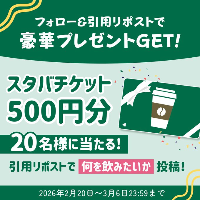 賞品:スターバックスカード500円分(20名様)