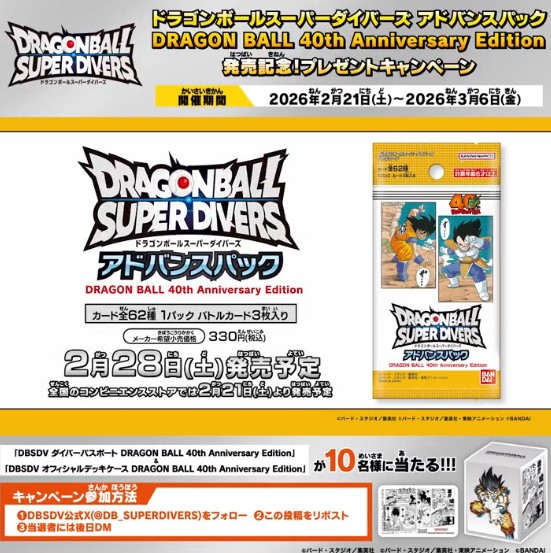 ドラゴンボールスーパーダイバーズ‐DBSDVアドバンスパック DRAGON BALL 40th Anniversary Edition 発売記念!プレゼントキャンペーン