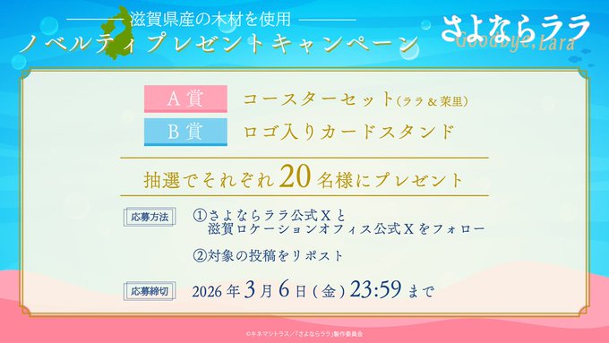 @Goodbye_Lara @ShigaLocation をフォロー&キャンペーン対象ポストをリポストしてご応募ください。