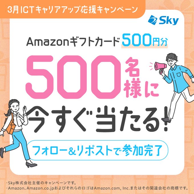 Sky株式会社 キャリア採用公式Xアカウントをフォロー&キャンペーン対象ポストをリポストして、記載されているURLからご応募ください。