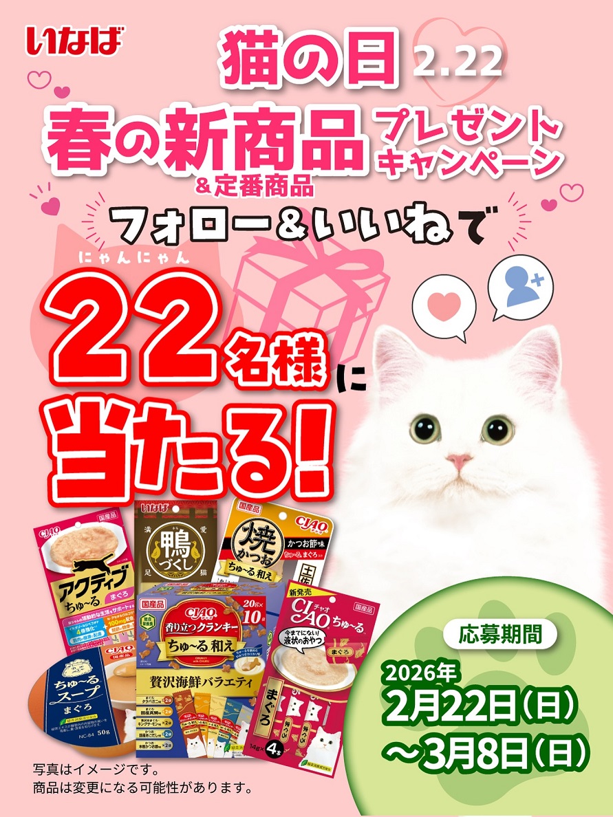 賞品:「春の新商品」とCIAOちゅ~るなど定番商品の詰め合わせセット(22名様)