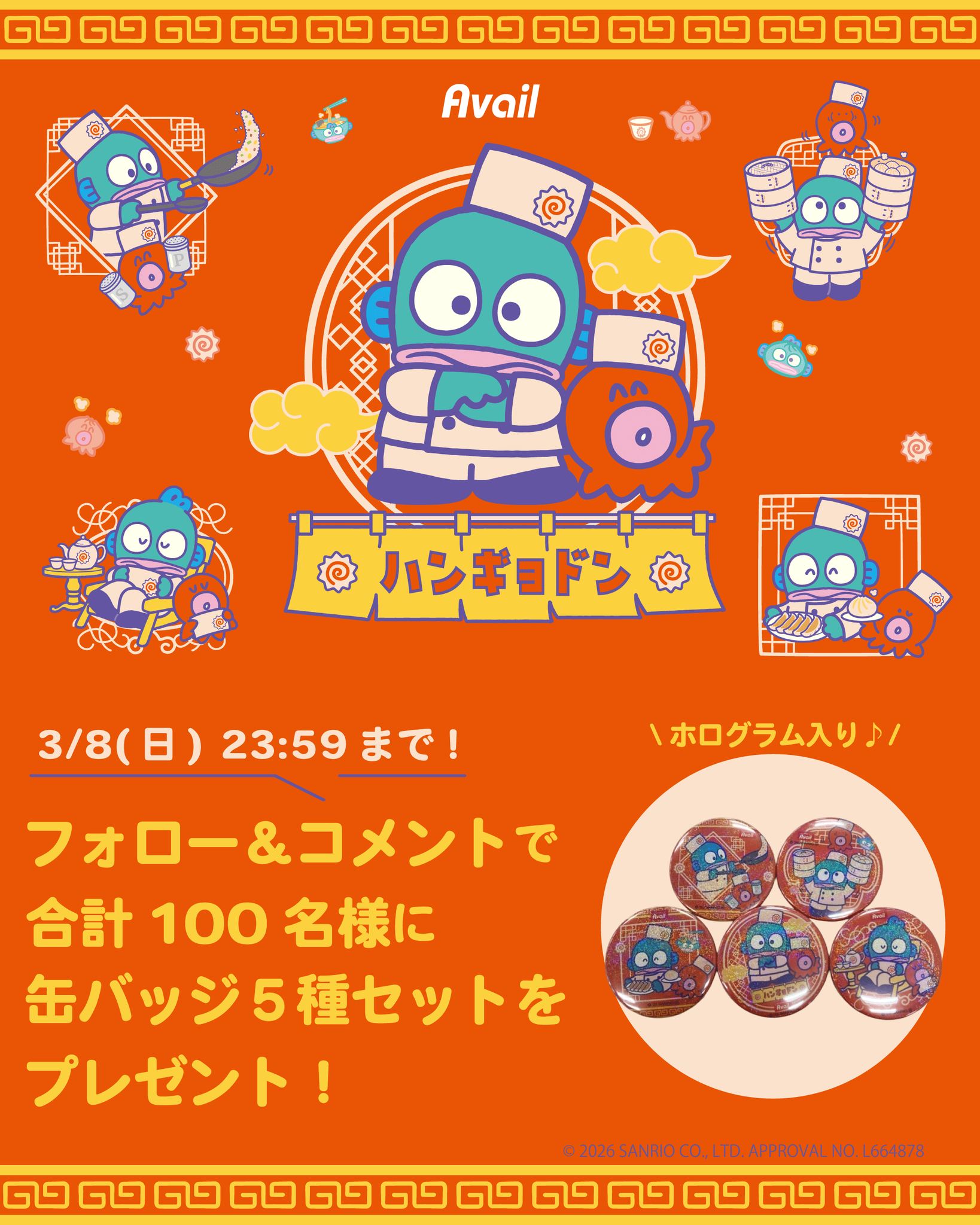 賞品:ハンギョドンの缶バッジ5種セット(100名様)