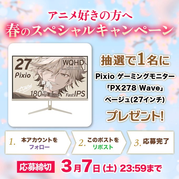 賞品:Pixio ゲーミングモニター 「PX278 Wave」 ベージュ(27インチ)(1名様)