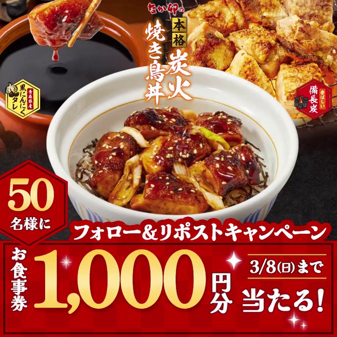 なか卯‐ 本格炭火焼き鳥丼発売記念 キャンペーン