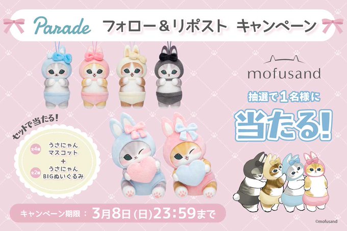 賞品:うさにゃんBIGぬいぐるみ(全2種)&うさにゃんマスコット(全4種)のセット(1名様)