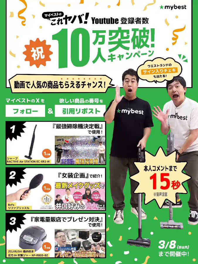 マイベスト‐公式YouTube「マイベストのこれヤバ!」登録者数10万人突破記念キャンペーン