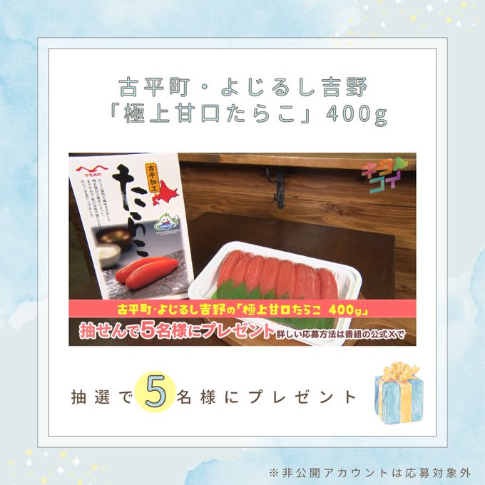 賞品:古平町・よじるし吉野「極上甘口たらこ400g」(5名様)