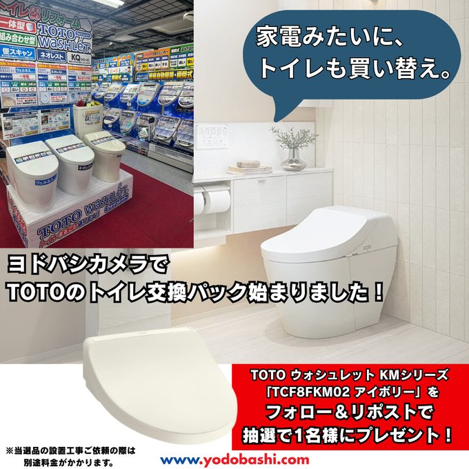 賞品:TOTO最新型瞬間式ウォシュレット KMシリーズ(1名様)