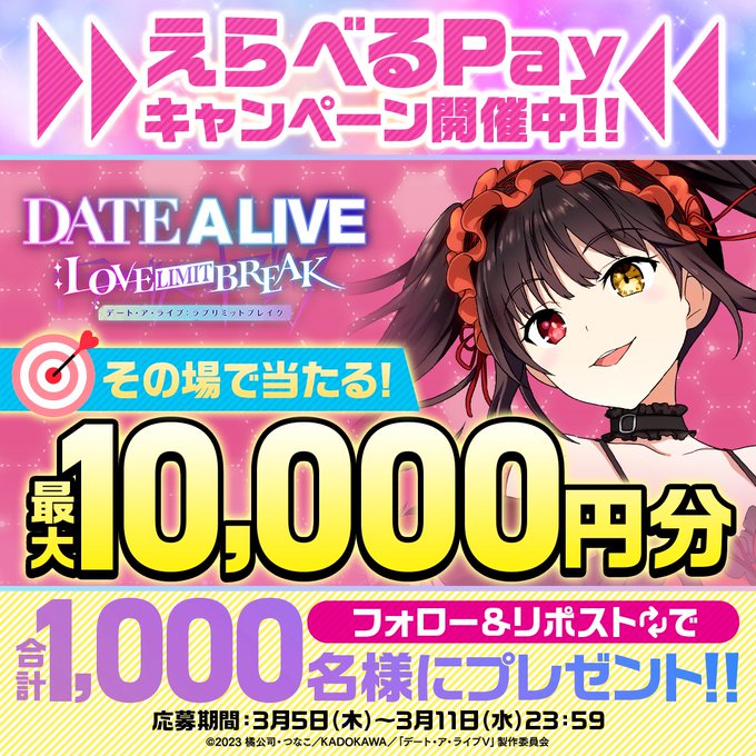 DATE A LIVE:Love Limit Break公式Xアカウントをフォロー&キャンペーン対象ポストをリポストして、キャンペーンページからご応募ください。
