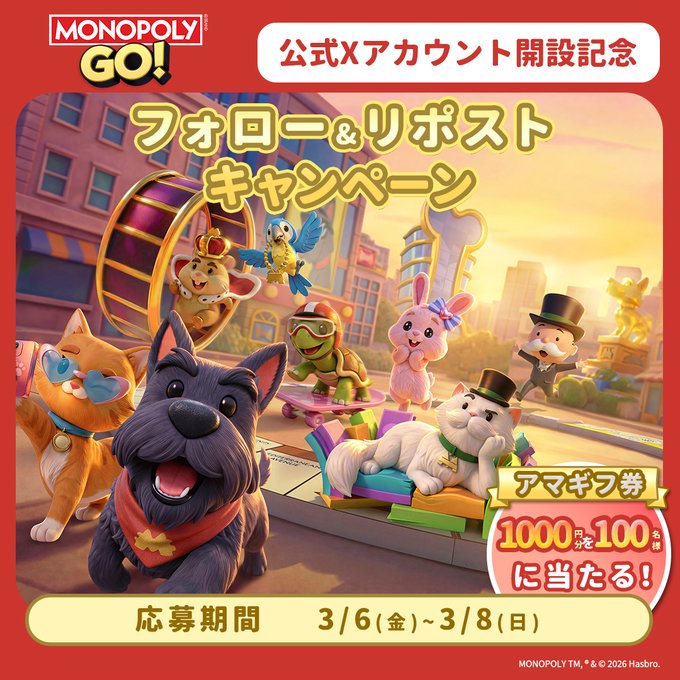 MONOPOLY GO!公式X開設のお祝いキャンペーン