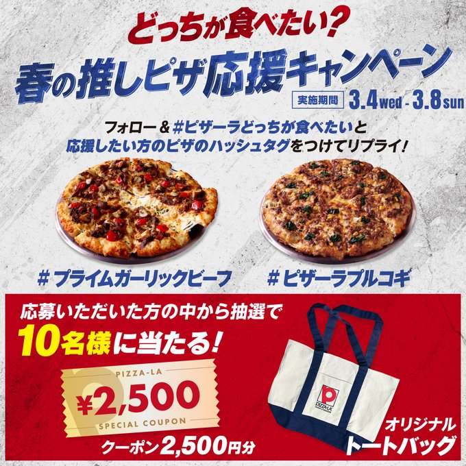 ② #ピザーラどっちが食べたい と 応援したいピザのハッシュタグをつけてリプライ