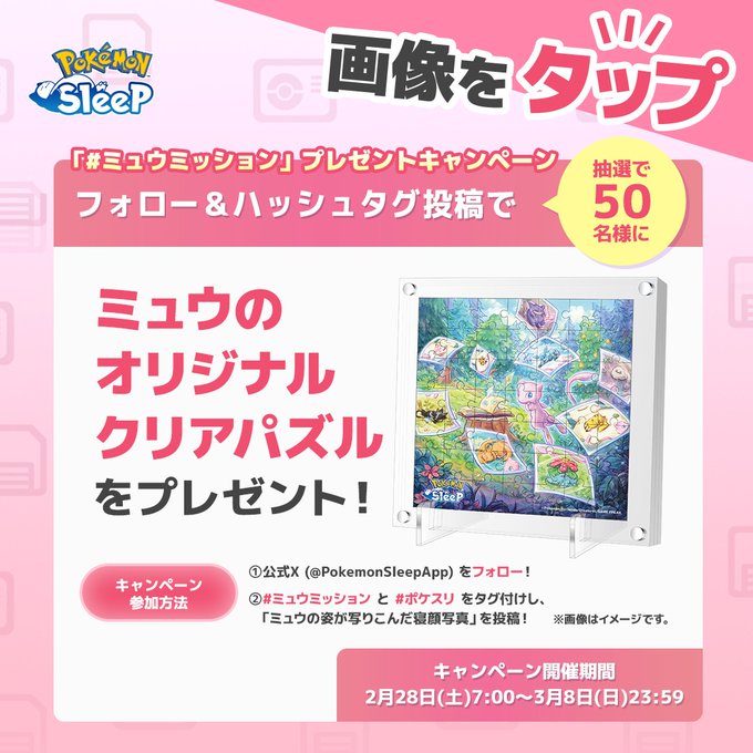 画像をタップして、みなさんがリサーチしたミュウの姿が写りこんだ寝顔写真を投稿してください!