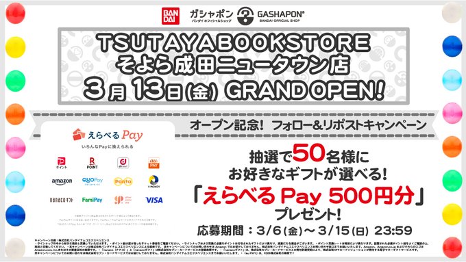 ガシャポンバンダイオフィシャルショップ TSUTAYABOOKSTOREそよら成田ニュータウンOPEN記念