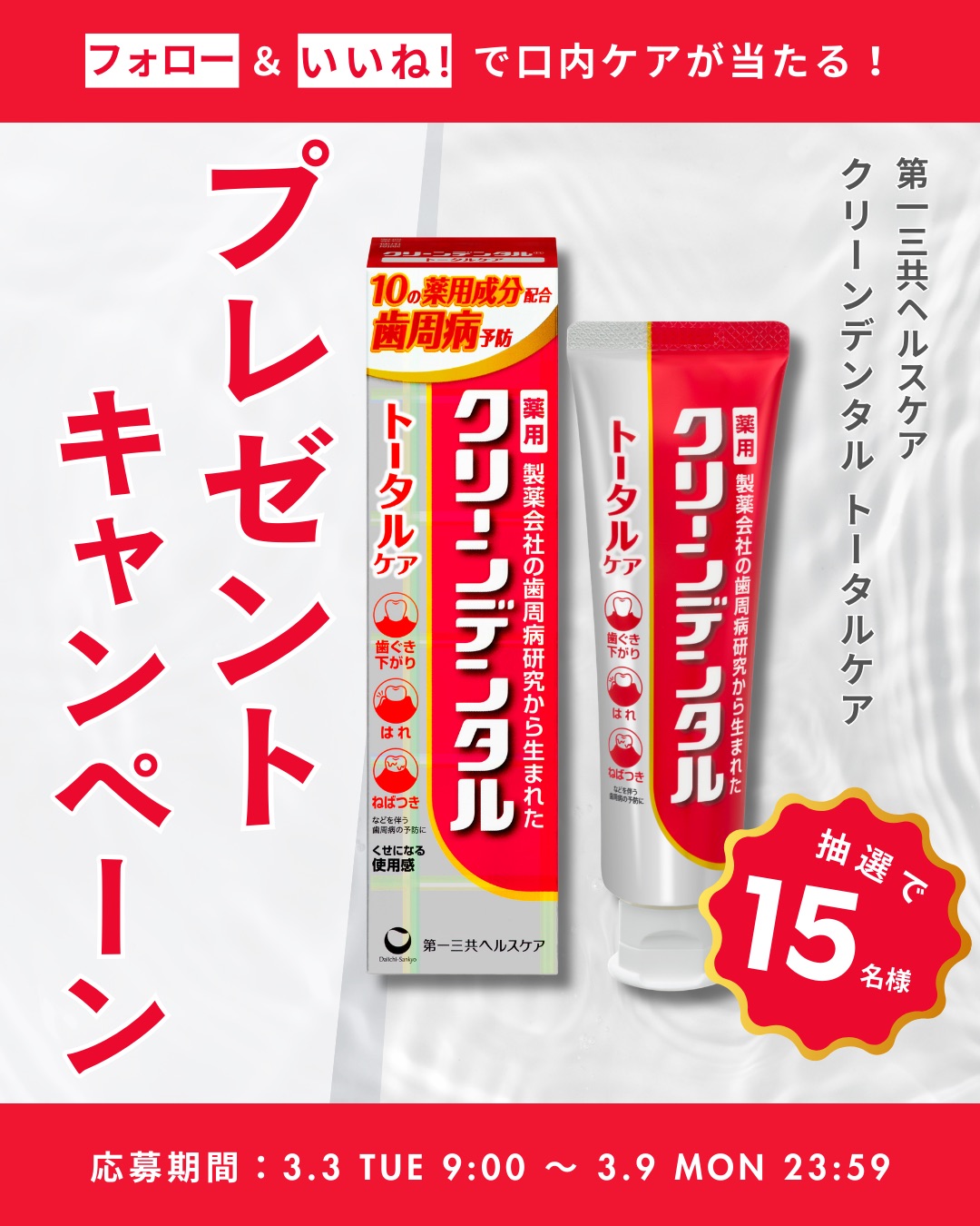 賞品:第一三共ヘルスケア クリーンデンタル トータルケア(15名様)