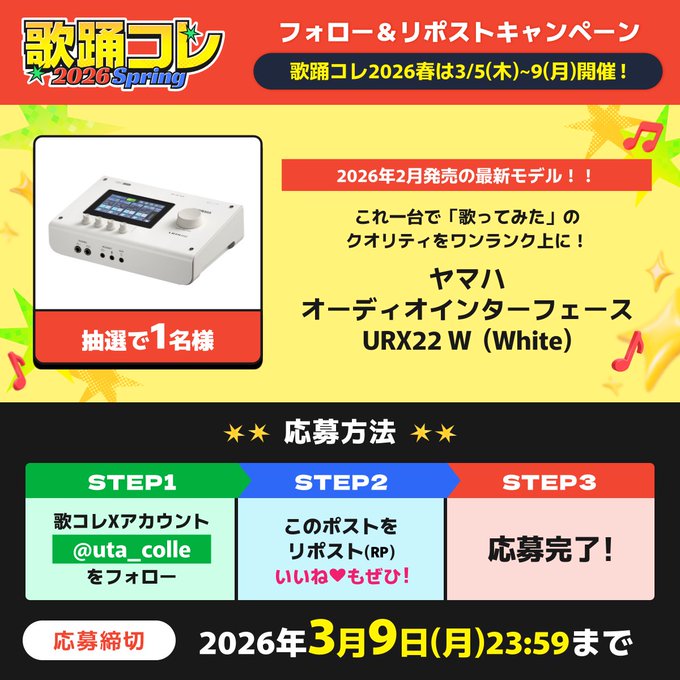 賞品:ヤマハ オーディオインターフェース URX22 W (White)(1名様)