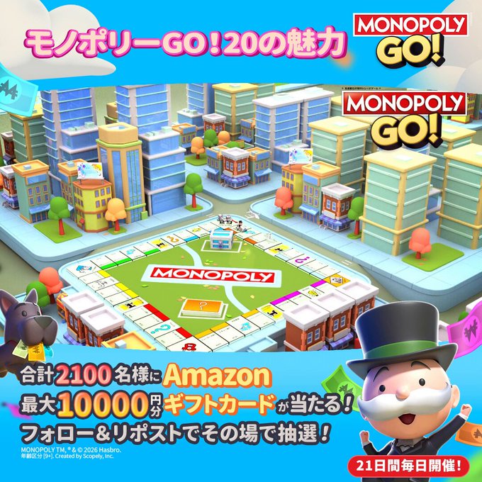 MONOPOLY GO! (モノポリーGO!)公式Xアカウントをフォロー&キャンペーン対象ポストをリポストしてご応募ください。