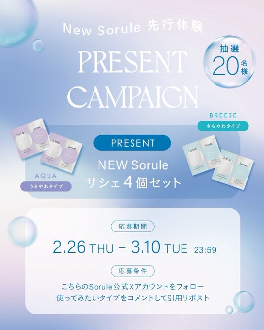 賞品:シャンプーとトリートメントのサシェ4個セット(20名様)