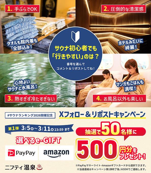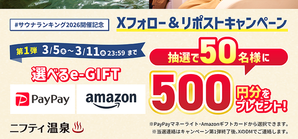 ニフティ温泉‐#サウナランキング2026 開催記念CP