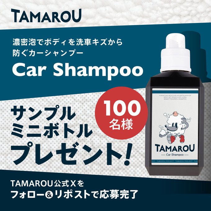 賞品:濃密泡でボディを洗車キズから防ぐ『CarShampoo』のミニボトル(100名様)