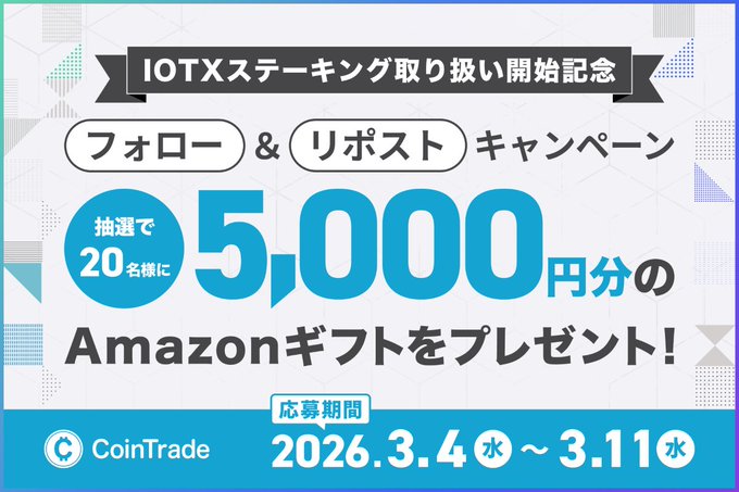 コイントレード/CoinTrade‐IOTXステーキング取り扱い開始記念