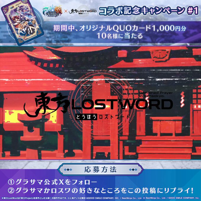 賞品:東方LostWordコラボ特製デザインQUOカード(1000円分)(10名様)