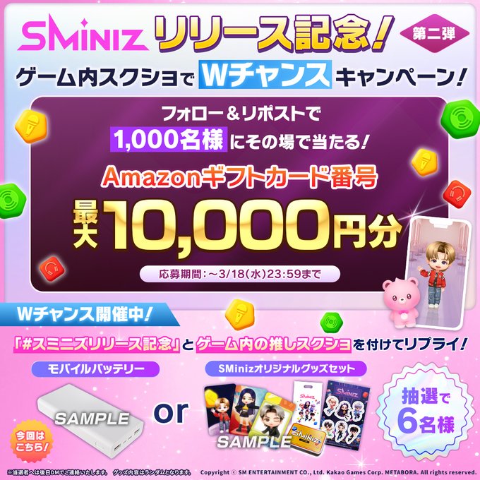 SMiniz公式Xアカウントをフォロー&キャンペーン対象ポストをリポストして、記載されているURLからご応募ください。