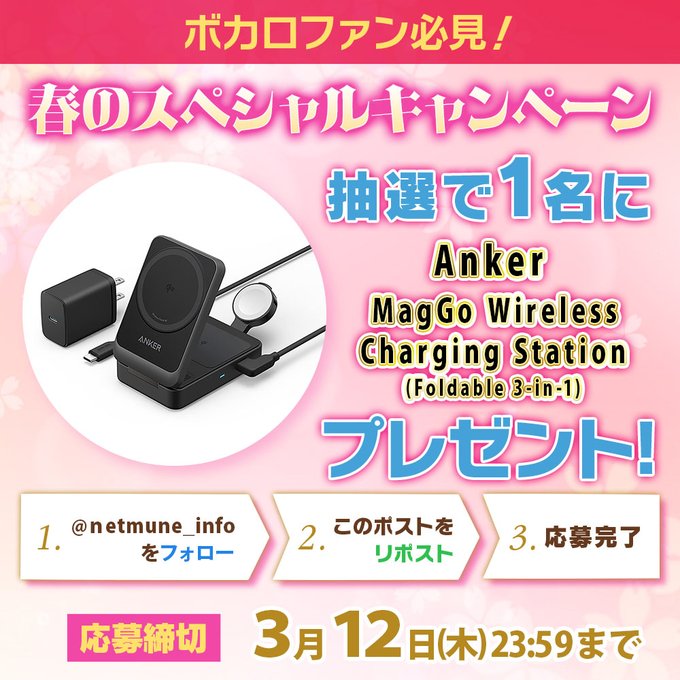 賞品:Anker MagGo Wireless Charging Station (Foldable 3-in-1)(1名様)