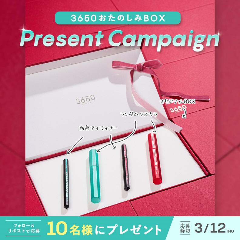 賞品:新色アイライナー2本&ランダムマスカラ2本&限定BOX(10名様)