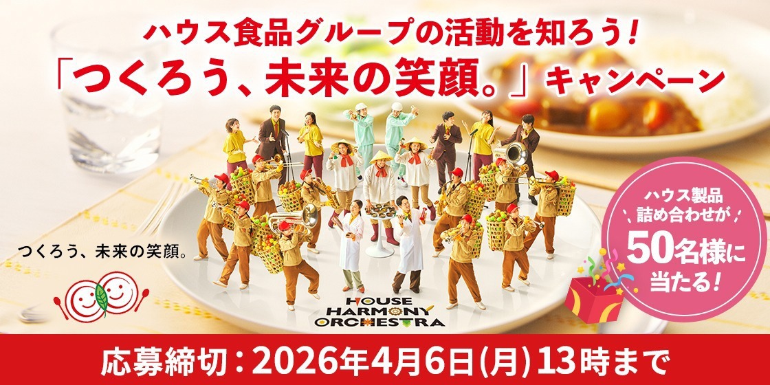 ハウス食品グループ製品詰め合わせを50名様にプレゼント 2026.03.11 2026.03.10Come on House‐ハウス食品グループの活動を知ろう!「つくろう、未来の笑顔。」キャンペーン 賞品:ハウス食品グループ製品詰め合わせ(50名様) 締切:2026年4月6日(月)13:00ご応募には会員登録/ログインが必要です。※詳細はキャンペーンページにてご確認ください。応募はこちらから