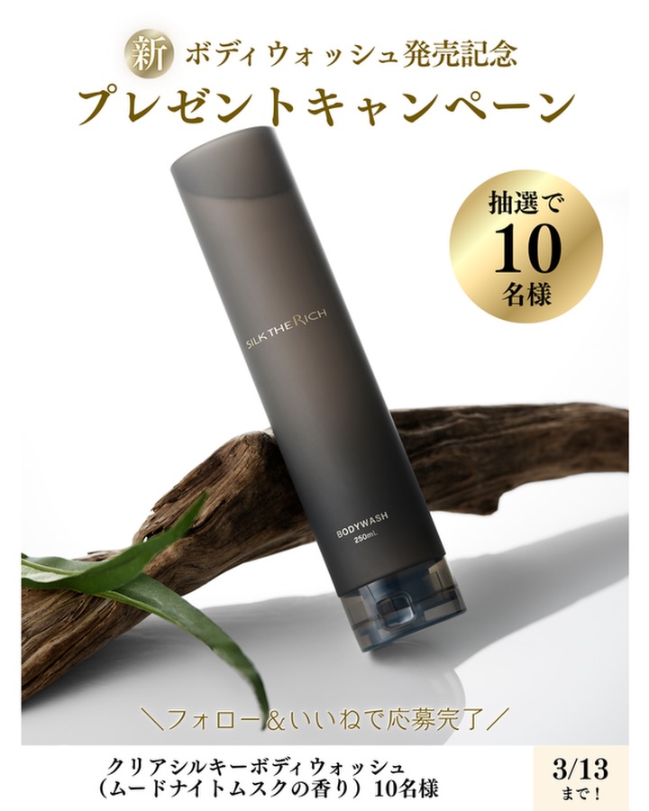賞品:ザ・リッチ クリアシルキー ボディウォッシュ(ムードナイトムスクの香り)(10名様)