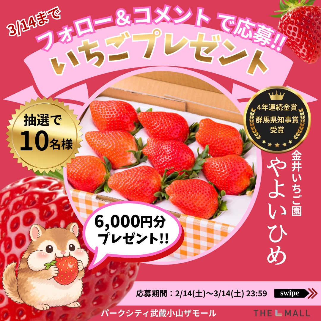 賞品:金井いちご園「やよいひめ」6,000円分(10名様)