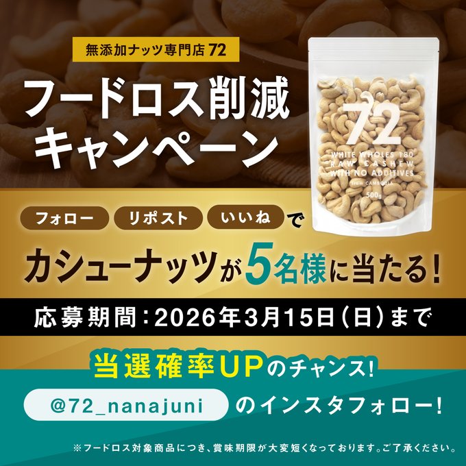 賞品:カシューナッツ(5名様)