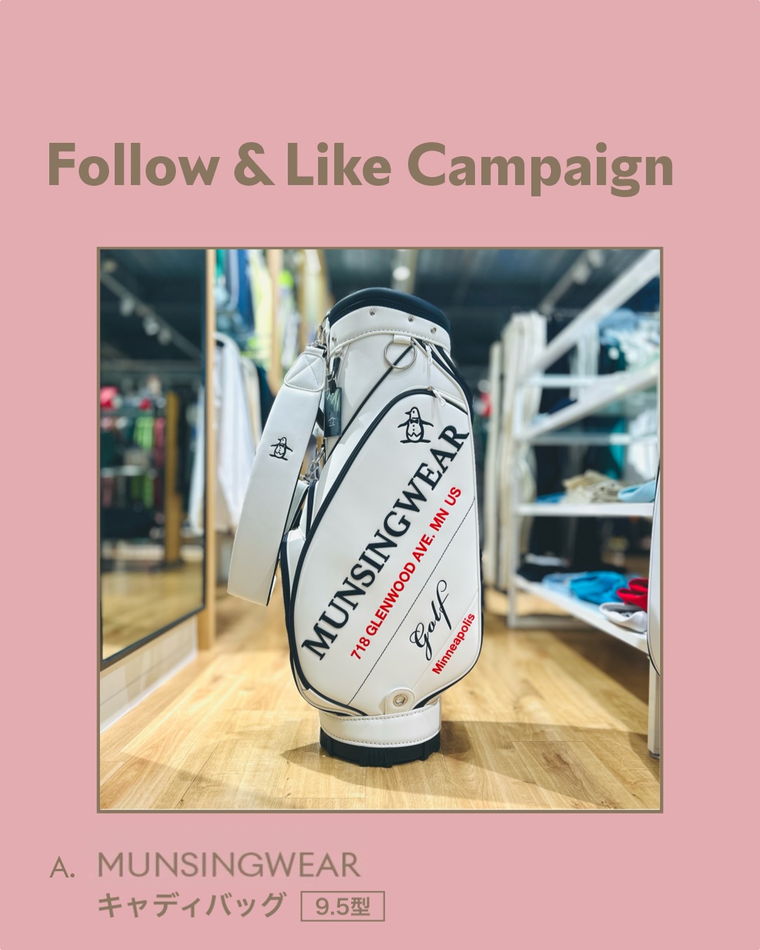 【Instagram懸賞】キャディーバッグ、トートバッグ、ゴルフポーチを3名様にプレゼント 2026.03.13マンシングウェア アウトレット鳥栖店‐Follow & Like Campaigne 賞品:キャディーバッグ、トートバッグ、ゴルフポーチ(3名様) 締切:2026年3月15日(日)フォロー&いいね&コメントで当たる!※詳細はキャンペーンページにてご確認ください。応募はこちらから